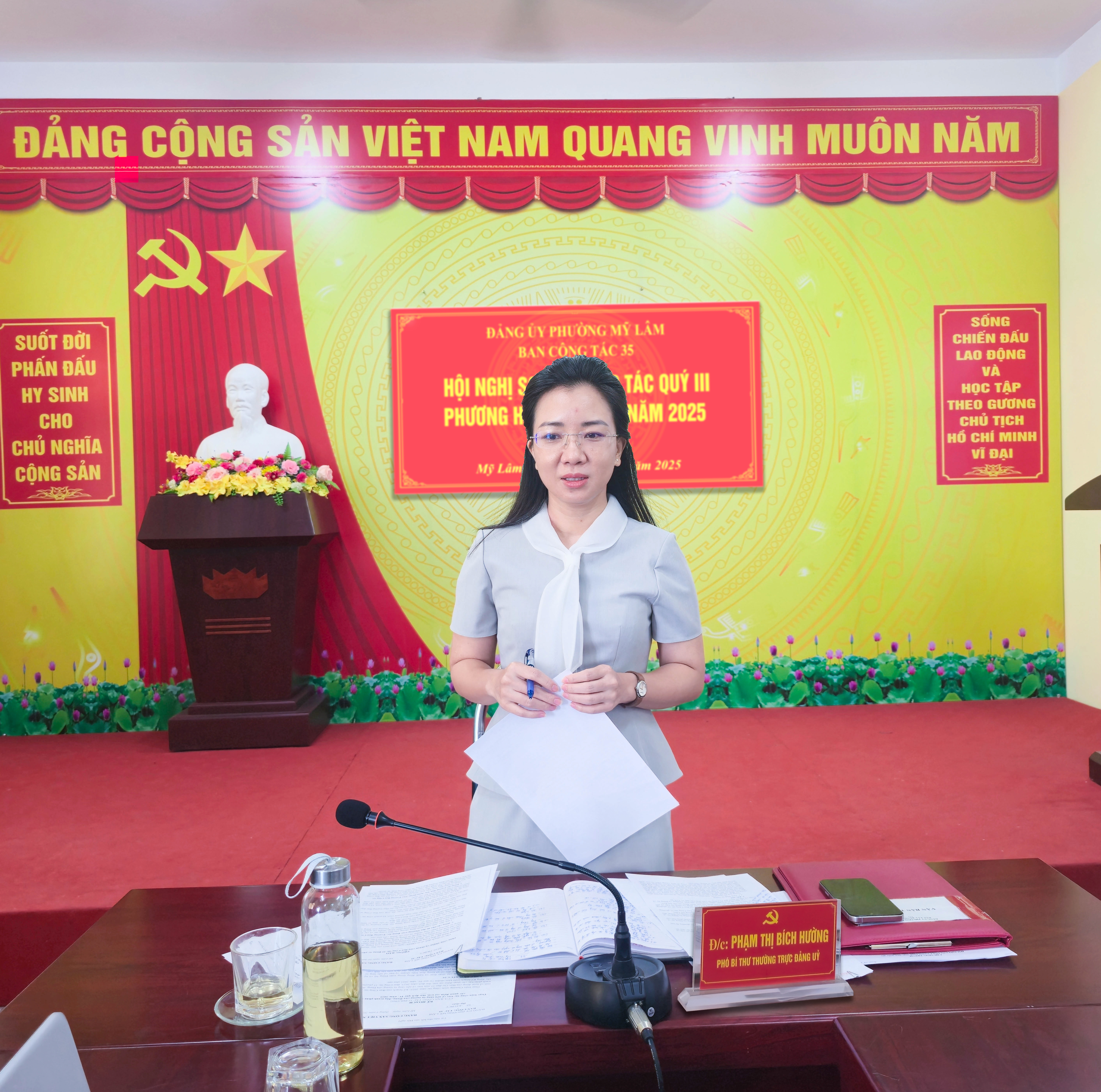 Kết luận Hội nghị, đồng chí Phạm Thị Bích Hường, Phó Bí thư Thường trực Đảng ủy, Trưởng Ban Công tác 35 phường biểu dương Cơ quan Thường trực Ban Công tác, các đồng chí thành viên BCT, thành viên Tổ cộng tác viên đã tích cực thực hiện nhiệm vụ được giao trong bối cảnh sau sắp xếp, sáp nhập, vận hành mô hình chính quyền địa phương 2 cấp, Ban Công tác 35 của phường mới được thành lập và đi vào vận hành một thời gian ngắn.