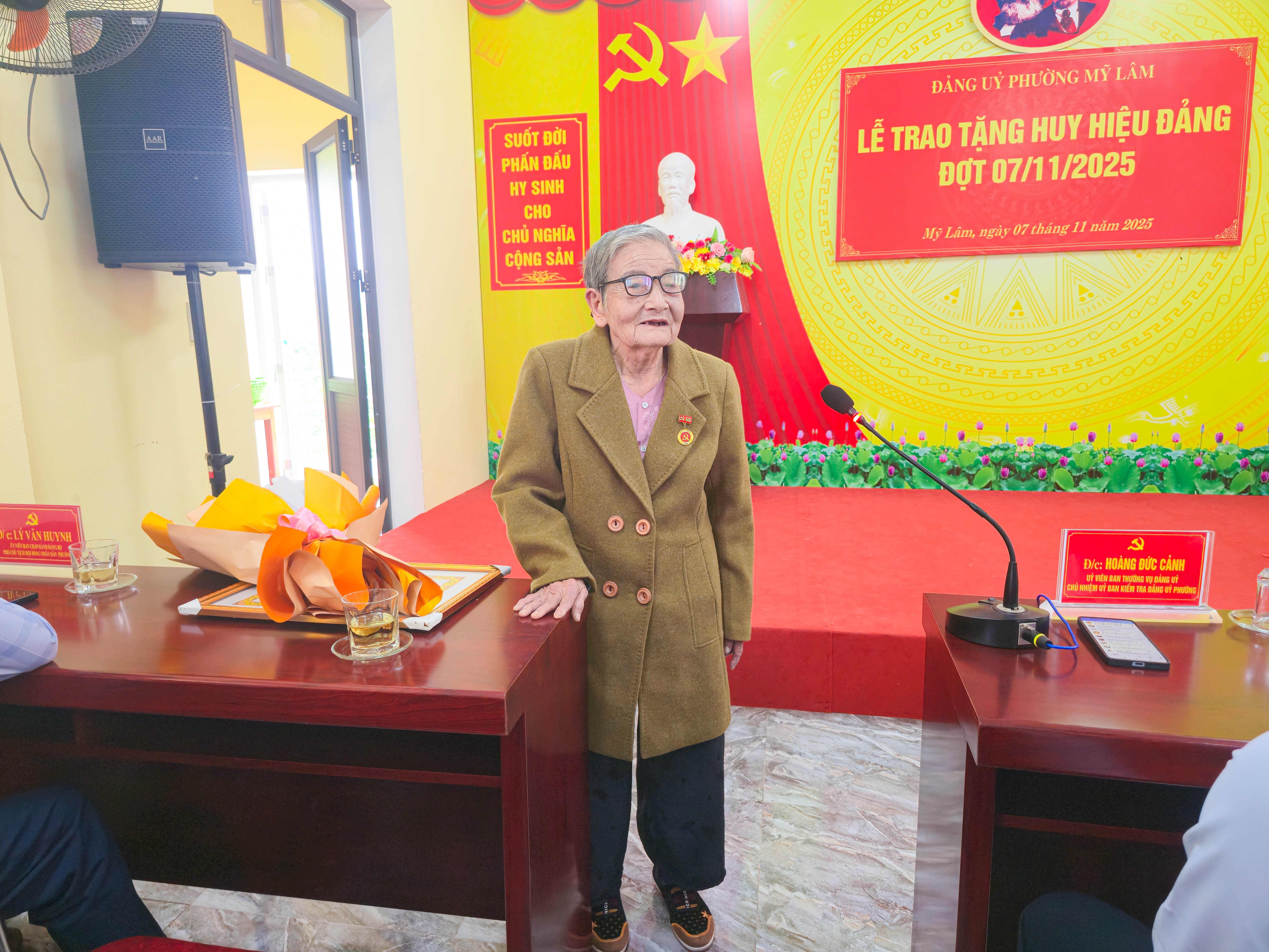 Trong đợt trao tặng này, Đảng bộ phường Mỹ Lâm trao tặng Huy hiệu 60 năm tuổi Đảng cho 02 đồng chí, Huy hiệu 50 năm tuổi Đảng cho 01 đồng chí, Huy hiệu 45 năm tuổi Đảng cho 04 đồng chí, Huy hiệu 40 năm tuổi Đảng cho 05 đồng chí và Huy hiệu 30 năm tuổi Đảng cho 03 đồng chí.