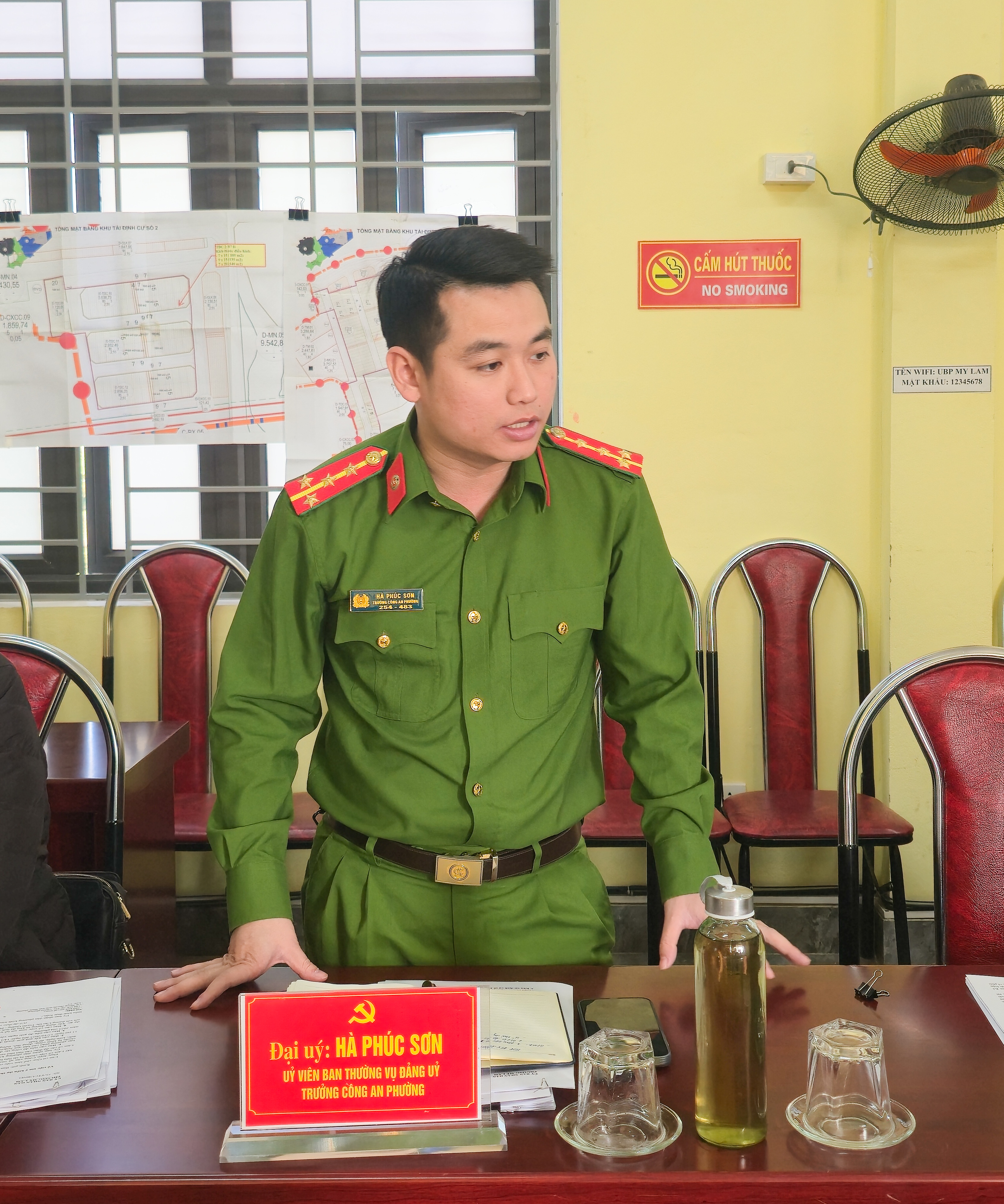Đồng chí Trưởng Công an phường phát biểu tại Hội nghị